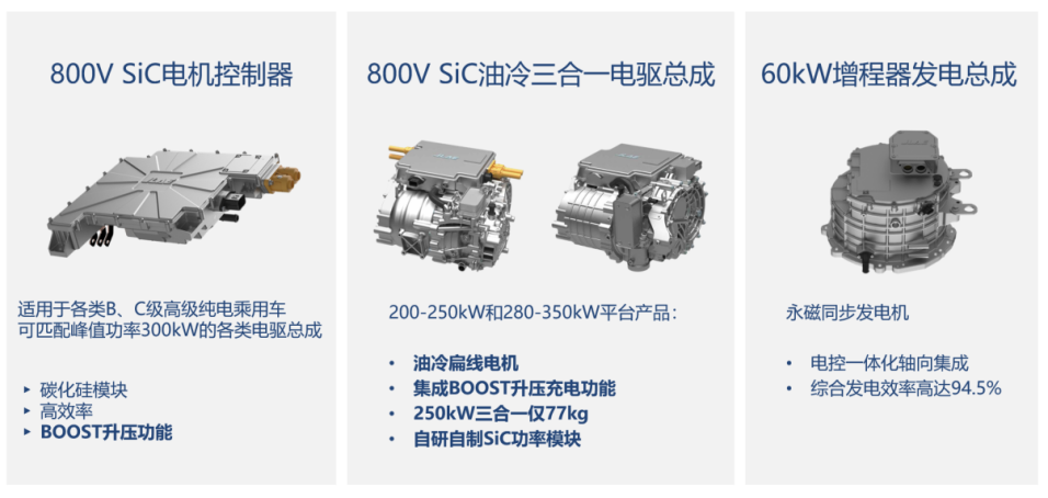 公司深耕以第三代功率半導體碳化硅(SiC)為基礎的800V高壓電控,及其延伸的集成式電驅(qū)動系統(tǒng)和多融合動力域控領域,產(chǎn)品包括SiC功率模塊和采用SiC功率模塊的高壓電控及電驅(qū),為新能源汽車、eVTOL飛行器等領域客戶提供高效增值的解決方案,助力客戶達到行業(yè)領先水平。