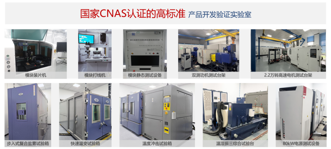 公司擁有行業(yè)領先的2.2萬轉(zhuǎn)高速電機測試臺架和雙測功機性能測試臺架等實驗設備,已獲得國家CNAS認證實驗室,具備年產(chǎn)20萬只功率模塊、20萬臺電控和10萬套電驅(qū)總成的生產(chǎn)能力,并已通過IATF 16949質(zhì)量管理體系等認證。
